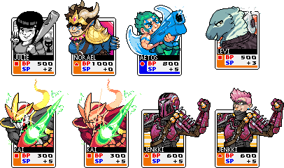 Some SNK VS Capcom card style sprites. Some of these are commissions. Levi was for Ghostwrassler. Kai was for Mrfariator. and Jenki was for Tawa Tawa on tumblr