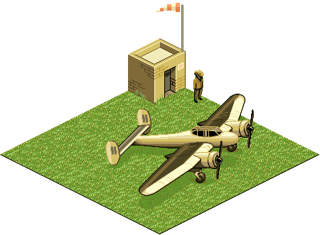 A lovely iso. I however find the tiny building not quite matching the person and plane, too simplistic in style and coloring. Shadows on the building and person are needed. Grass may be too overworked too. Still, lovely :)