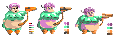 This is my first time doing pixel art so thank you for the advice. I'll try what you said and get back to it. And much fatter? I can try making her bigger in some parts I suppose. I was originally going to have her be 5 sizes and you have to fill up a gauge with energy to get to each size. It would make sense to have her walk slower with more fire power too right?