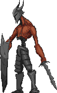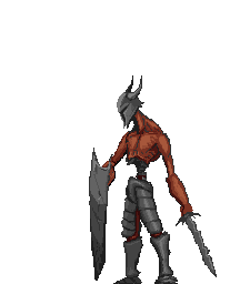 I moved the helmet down one pixel and I think it grounds it a little more with his body. I also noticed his cloth seems to have a bit of red in it in the inventory and art screens, and if the palette allows for it I think it would help add a little bit of "pop" to his sprite. How gory is the combat going to be? This just begs for blood and dismemberment to me. Reminds me of Diablo 1 (in a very good way). |
