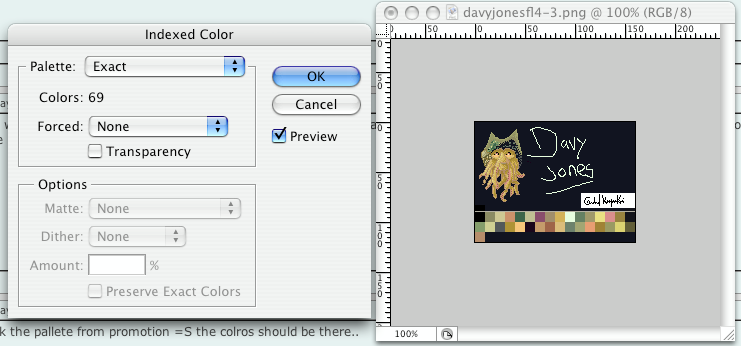 I'm not sure what's happened here, but most of the colors in your palette at the bottom there aren't used in the piece at all, and most of the colors used in the piece are not in your palette.