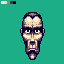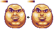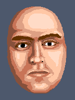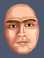 You had another color (the white-eye) which I included in thecheeks. They are mirrored which can be improved on.The left eyebrow (his right) is lifted a bit. The rest of the facetends to flow a little bit upwards. Maybe you can attemptto shift some pixels there.For the chin I made a bump on to the right (his left).Also the chin on your examples was a bit too similar