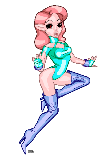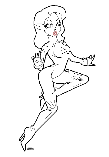 I can't really see anything wrong with her eyes. Hmmm I think I know what Morgan was getting at. See how or her legs the shading highlight crosses straight over from her skin onto the latex? I guess that makes it look a little like they have the same texture. Oh and you may wanna anti alias her outline against here skin :P Looking great so far can't wait to see her finished. |