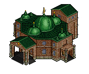 On the building with the domes. • The way the columns on the front portico meet the green roof is very ugly. • The much lighter color of the domes themselves makes them seem disconnected from the flat parts. |