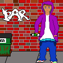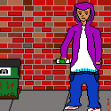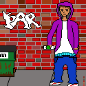 This is my tagger. For once this is an idea that popped into my head, instead of using reference for an idea. As you can tell lighting is not done yet, thinking top right have a lamp but not seen? On the brick wall there will be some graffiti. The side walk will have some trash to make it less plain. ![]() |