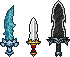 I am not so new to pixel art, but I haven't practiced in a while. Along with the first set of swords I am making for Milana, I came up with a new sword. I'm experiencing a few styles, and I am unsure which way to go to complete the blade! First set of swords: Sword WIP: