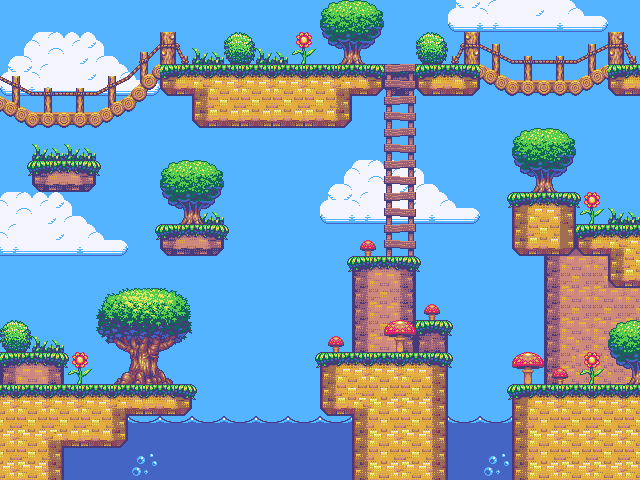 So in order to get used to creating pixel art with water I did a little test with one of the references you gave me. This is what I came up with: