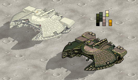 Ok take decision to Re-pixel as one weekly challenge one of my first work which I make and because Pixelmoon is with new design ... here is current result ... I keep idea and outlines and just work everywhere ... About colours I'm not shure but want to be dark and to have like ship is in shadow of the moon - with sunny reflection and to have colours which are near to gamma colours of the ground ... will try to keep colours to 16 ... Here is old work and where I'm now ... ![]() |
