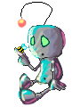 *increasing the contrast A LOT! - Don't use colours that are too similar, it's extrmely hard to notice the difference. Also, it's a good practice to try and reduce colour count *This guy is made from metal, try and think about how metal reflects light. Get a metal object and look at highlights, shadows, colours. *Look around the gallery for other robot/metal related pixel art, see how others have done it. *Your red light still needs a significant amount of work...ignore my edit in relation to it. But that red light would have more impact than just making a small highlight along the robot's outline.
