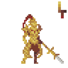 The character is difficult to read. You put so much detail (dithering? lines? I can't even tell because there's so much) into everything that there's no room left for shadows to show the form or distinctions between different major parts of the armour. "Less is more" is a cliché for a reason :]