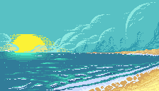 the clouds are really good! I think that the water looks good, however I would say that the perspective of the receding wave is a little bit off in a way that makes me see a small divot in the sand near the perspective. great work for your first time rendering a beach! I also think that your recent work with horizontal lines has been quite effective!