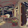 The perspective on this is amazing. So clever how fluidly it transitions from the first image. I'd assumed the top of the porch was arched in the first piece, and I am so impressed that it's actually a fisheye effect.