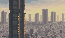 This piece puts together a ton of things that I love to see in pixel art. It's a master class in managing level of detail at different depths. I could have sworn I saw this static image parallax when I scrolled