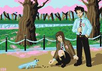 Secret Santa, ss25, anime, manga, park, sakura, cherry blossom, boy, girl, person, people, school, uniform, schoolgirl, schoolboy, Japanese, squirrel, nut, nuts, hazelnut, hazlenuts, Sakura Season (Secret Santa) avatars, Sakura Season (Secret Santa) icons, Sakura Season (Secret Santa) pixel art, Sakura Season (Secret Santa) forum avatars, Sakura Season (Secret Santa) AOL Buddy Icons
