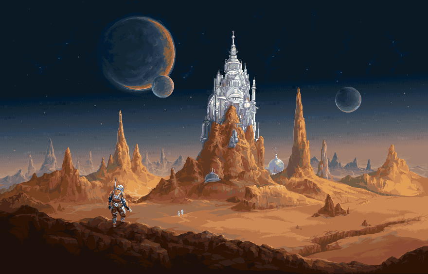 This is so good dude. I particularly love the brown-to-blue atmospheric perspective and the rim lighting on those rocky spires!