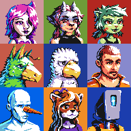 Various 8-bit character portraits I made for friends during Art Fight and the Lospec Open Secret Santa.