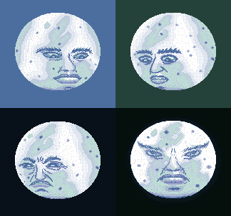 I like the expressiveness of the moon faces! This is charming. The facial anatomy is quite accurate and it is really cool how you did the faces from different perspectives. Have you considered adding a bit more contrast to the moon's surface features?