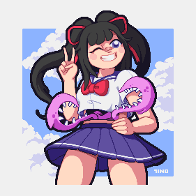 The style is based on Street Fighter, specifically Sakura's hyper combo screen art in Marvel vs. Street Fighter. All the buyer requested was the character by themselves so I slapped a quick sky background together so I could make the post more complete.