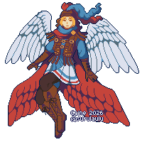 I wanted to work with the original palette of the character without compromising the appearance of certain colour combinations, so the colour count is a bit on the higher end, but I ended up agreeing it looked better that way. |