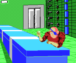 This is a frame from an animation I'm doing about the MSX game "Cross Blaim." Some minimalist 8-bit settings are eerily evocative. What on earth could be going on in the mind of a man stuck on a forgotten planet, lonely and deep underground, his only human interaction being to sell weapons to the space-warriors who can survive long enough to find him.