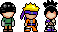 hmmm now that I think of them as dolls, I can totally understand. Perhaps it would be very easy to give a more doll like illusion; maybe shifting the outlines to a brown and outlining two pixels thick? And I feel the third guy's hair needs shading :)
